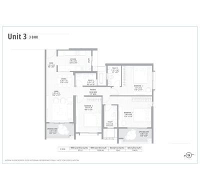 - 800 x 800 mm Vitrified tiles in living, kitchen and bedrooms